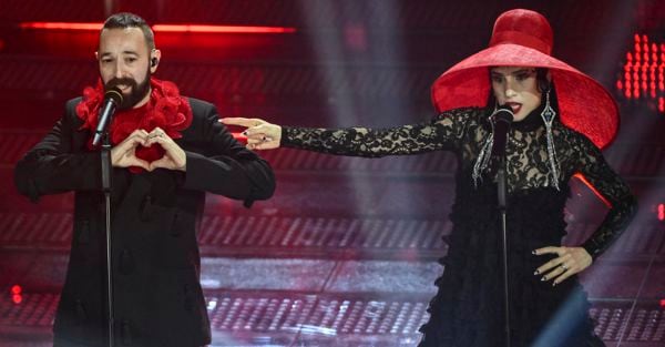 Achille Lauro con Alessia Marcuzzi, co-conduttrice della finale
